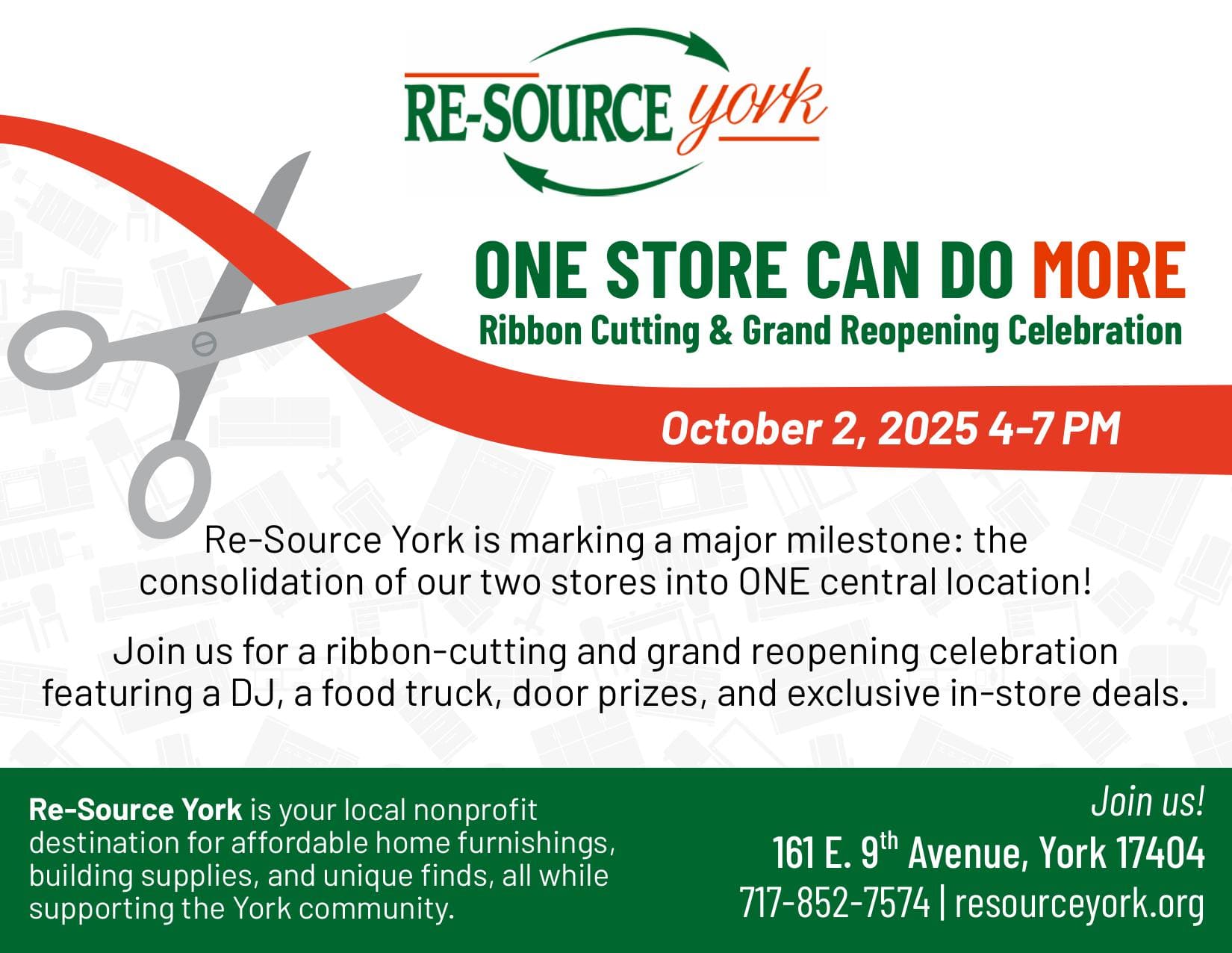 Re-Source York is marking a major milestone: the consolidation of our two stores into ONE central location!